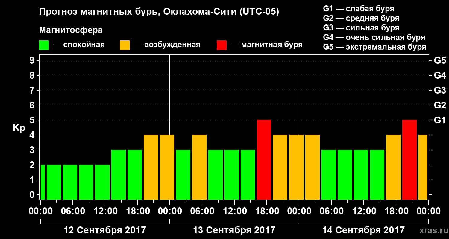 Прогноз магнитных бурь Оклахома-Сити — 12 сентября 2017 года