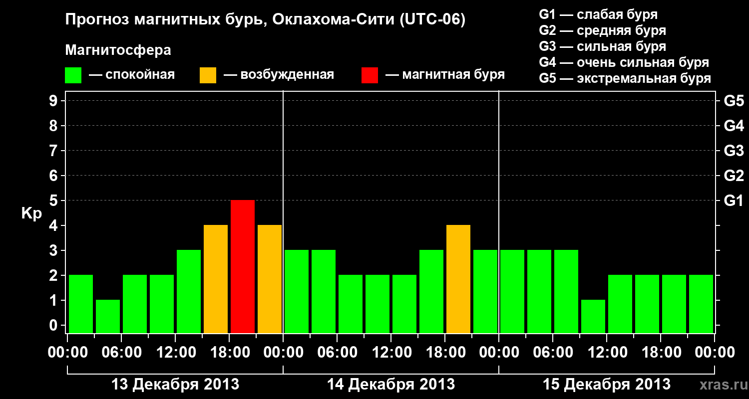 Прогноз магнитных бурь Оклахома-Сити — 13 декабря 2013 года