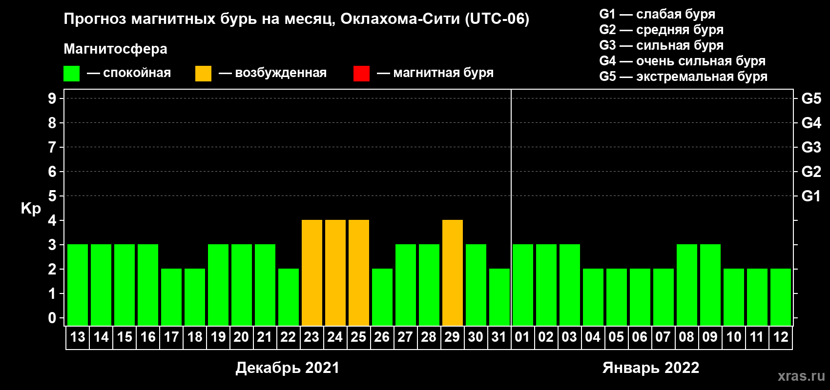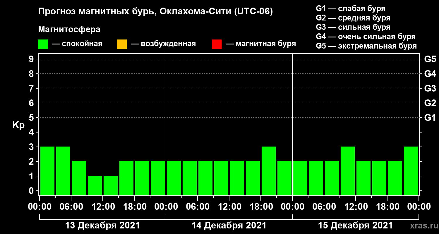 Прогноз магнитных бурь Оклахома-Сити на 13 декабря 2021 года