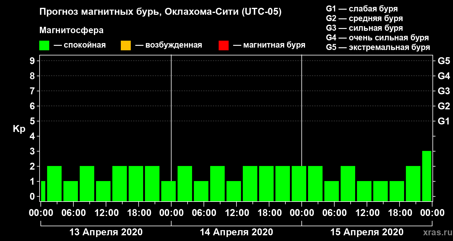 Прогноз магнитных бурь Оклахома-Сити на 13 апреля 2020 года