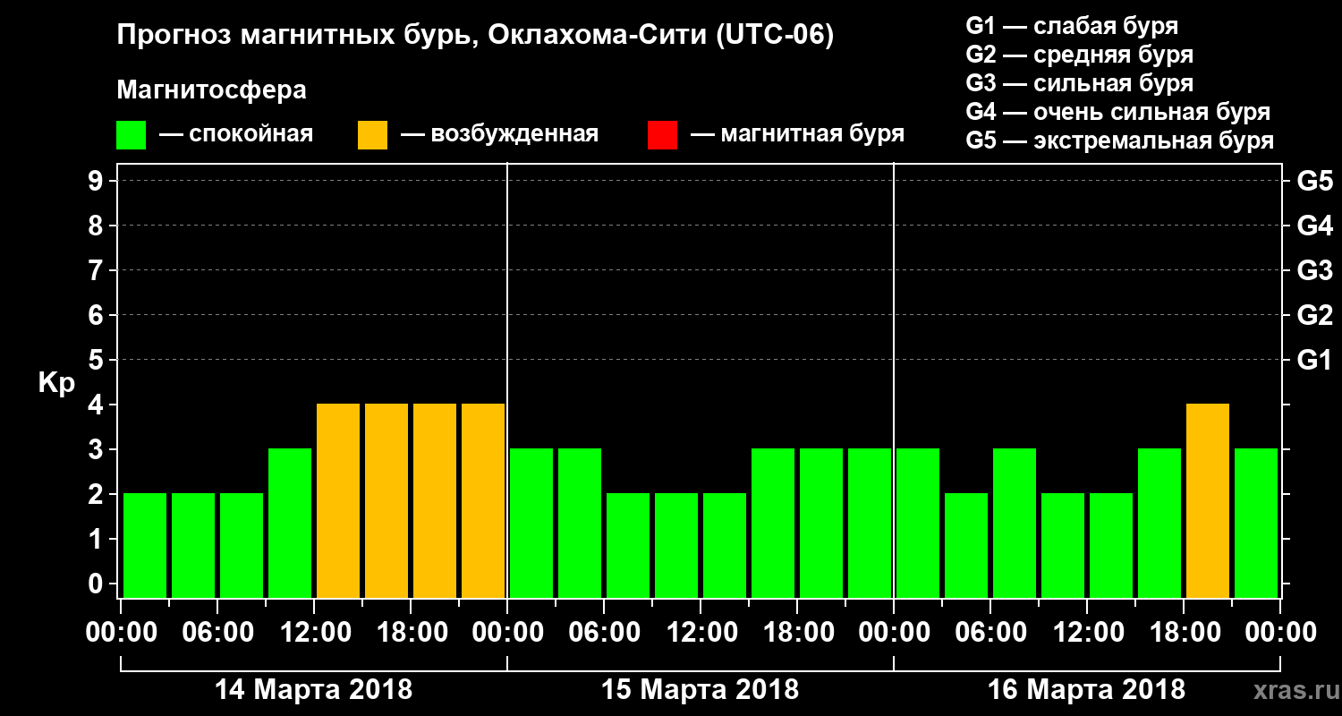 Прогноз магнитных бурь Оклахома-Сити — 14 марта 2018 года