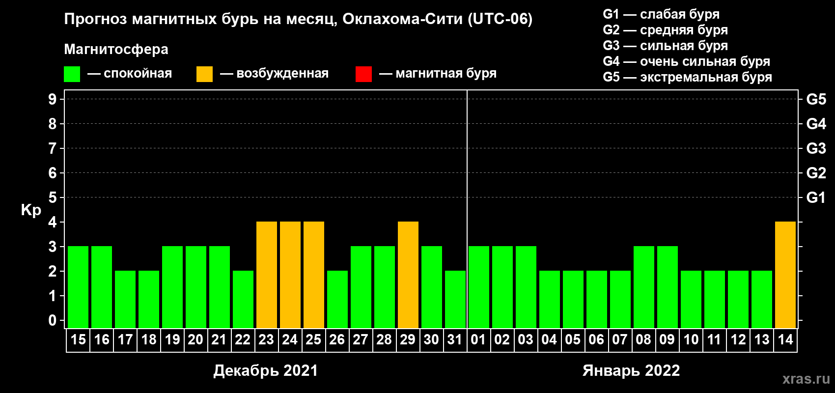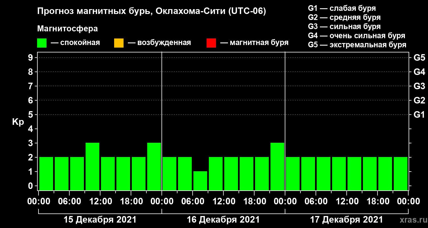 Прогноз магнитных бурь Оклахома-Сити на 15 декабря 2021 года