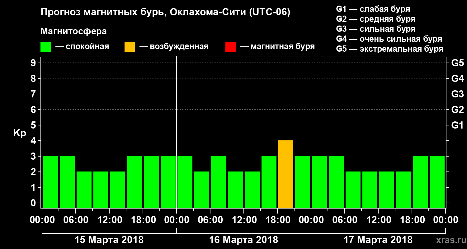 Прогноз магнитных бурь Оклахома-Сити на 15 марта 2018 года