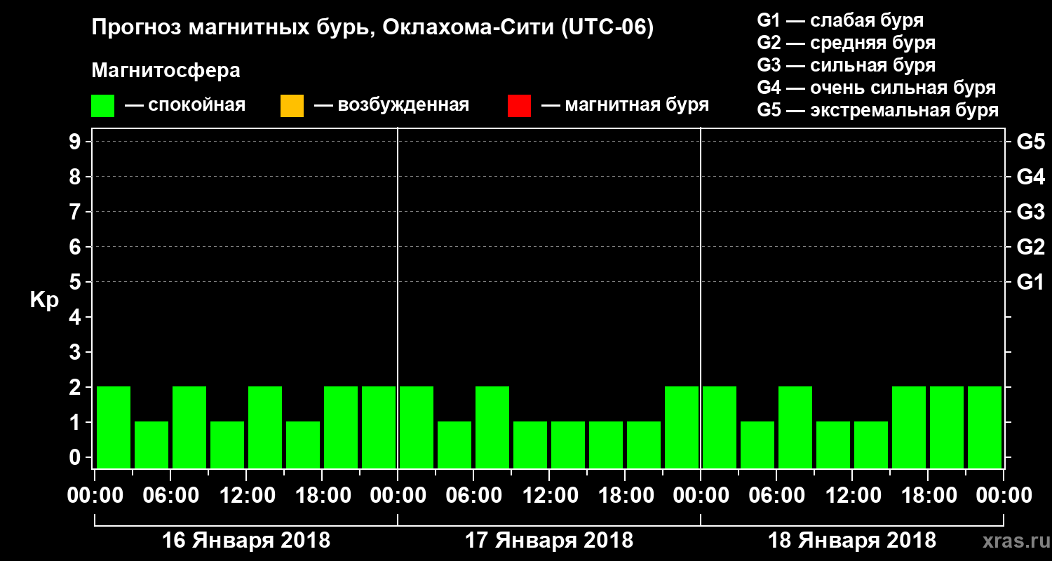 Прогноз магнитных бурь Оклахома-Сити на 16 января 2018 года