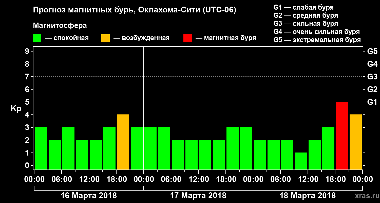 Прогноз магнитных бурь Оклахома-Сити — 16 марта 2018 года
