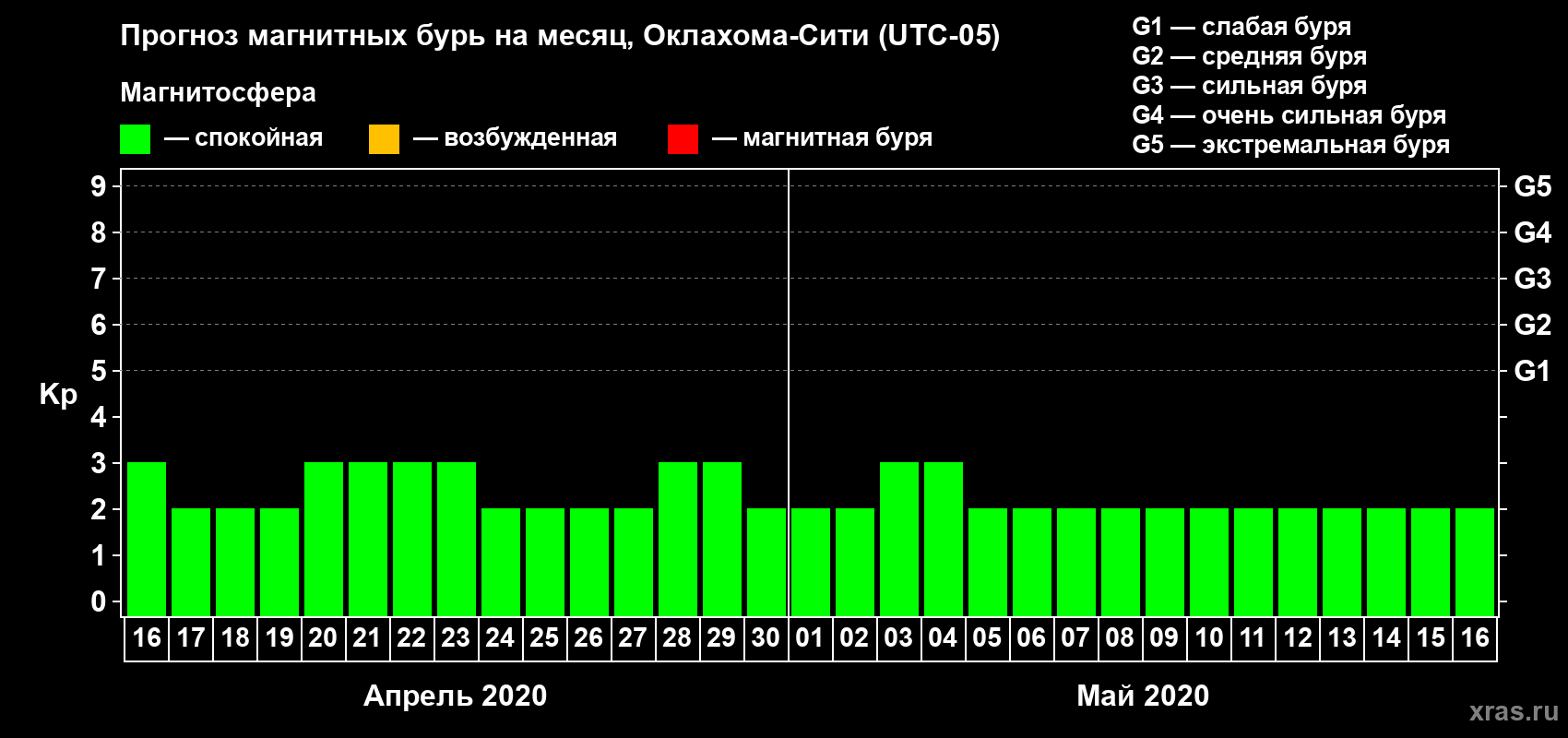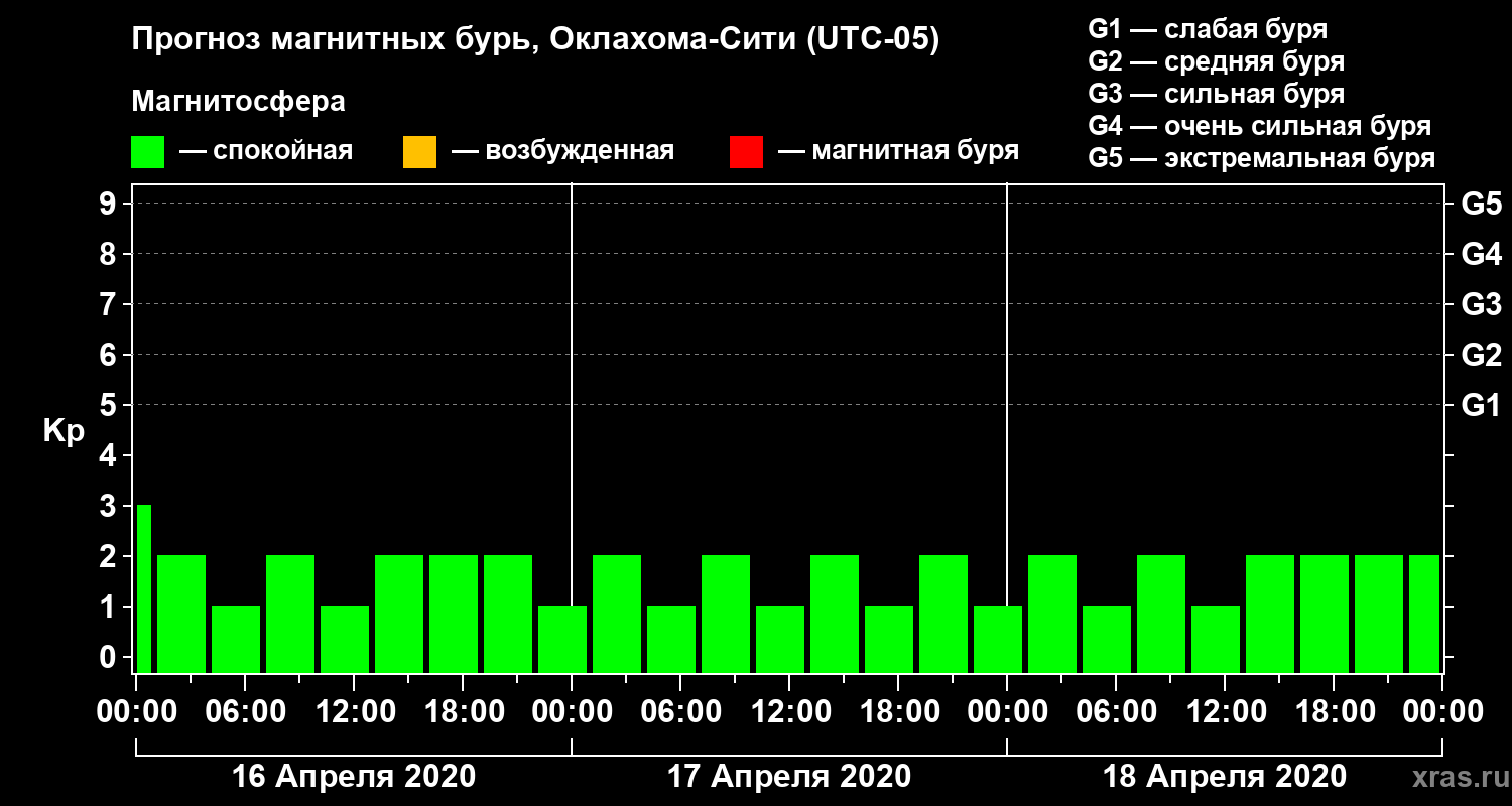 Прогноз магнитных бурь Оклахома-Сити на 16 апреля 2020 года