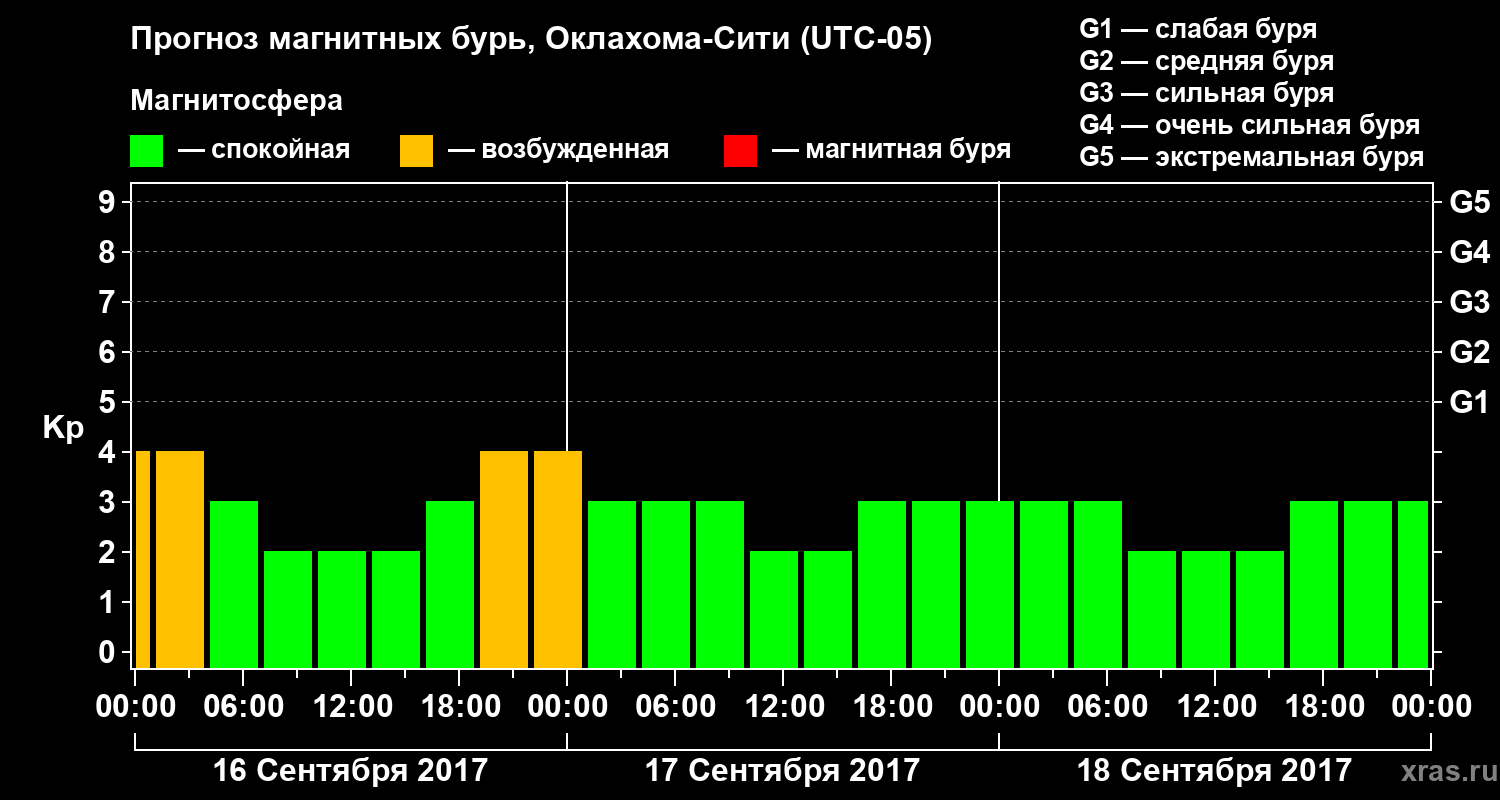 Прогноз магнитных бурь Оклахома-Сити — 16 сентября 2017 года
