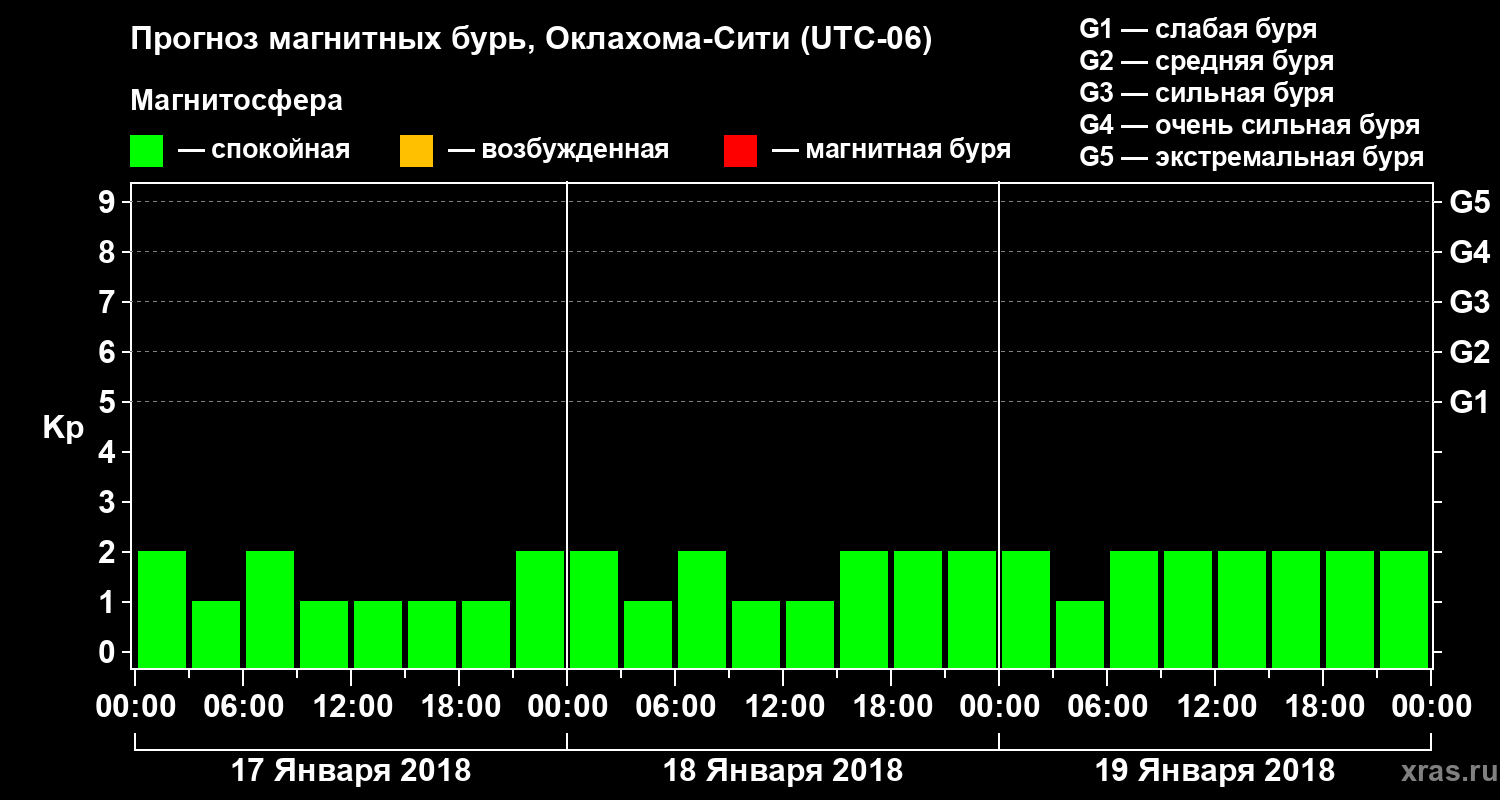 Прогноз магнитных бурь Оклахома-Сити — 17 января 2018 года
