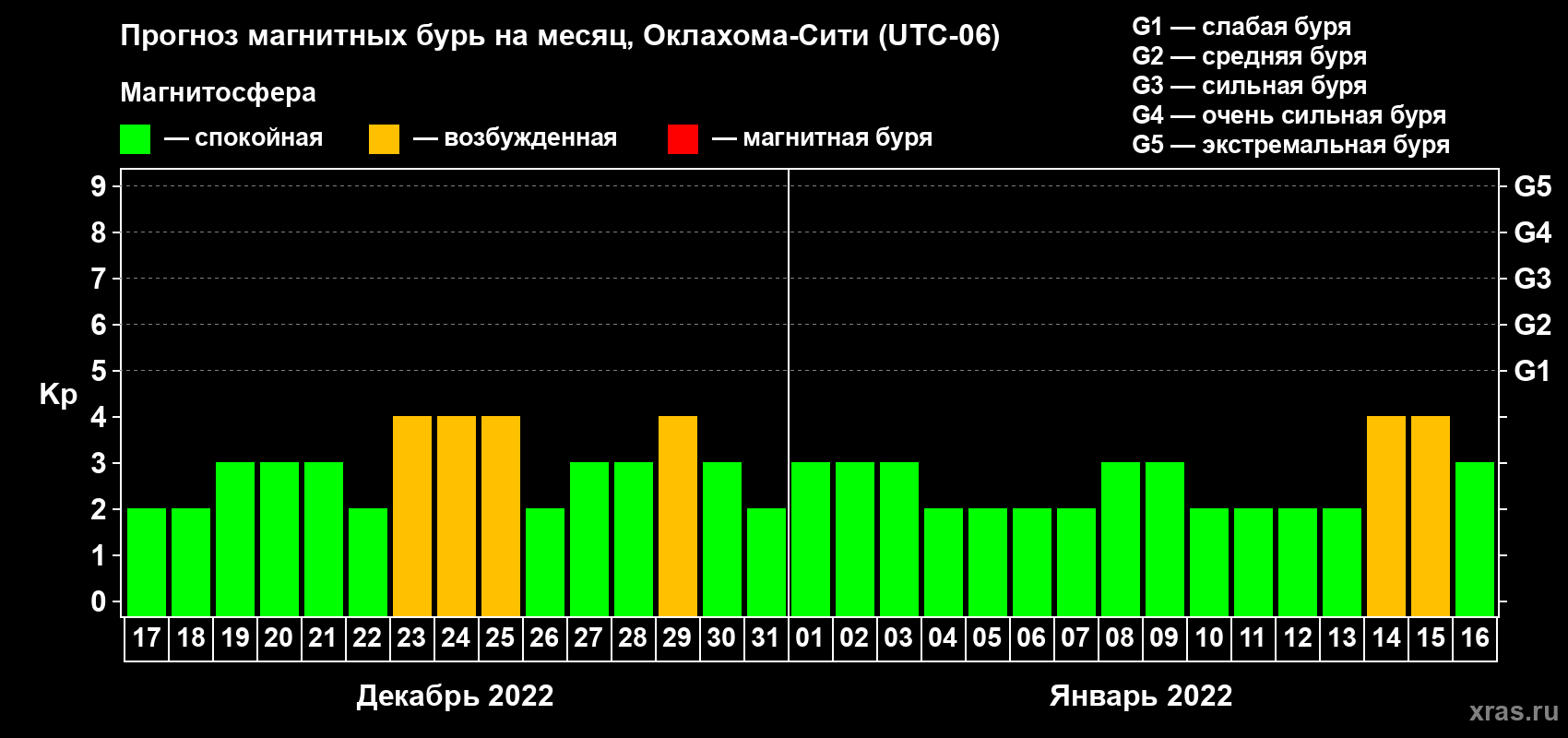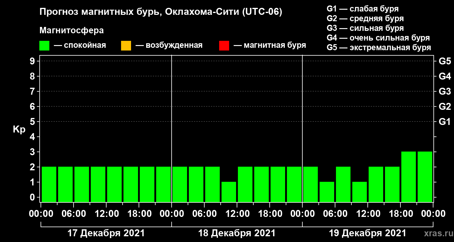 Прогноз магнитных бурь Оклахома-Сити на 17 декабря 2021 года