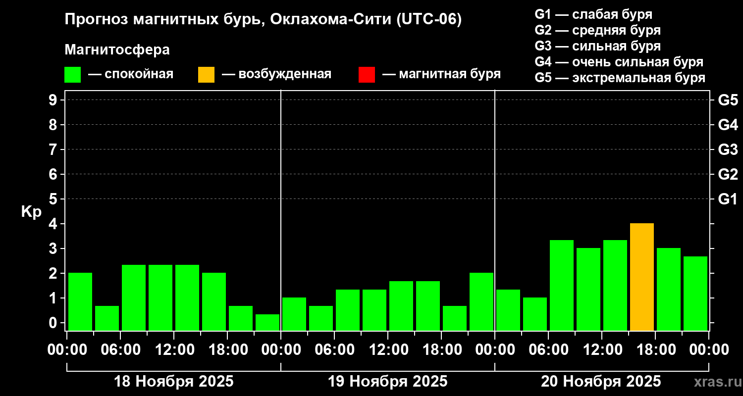 Прогноз магнитных бурь Оклахома-Сити на 18 ноября 2025 года