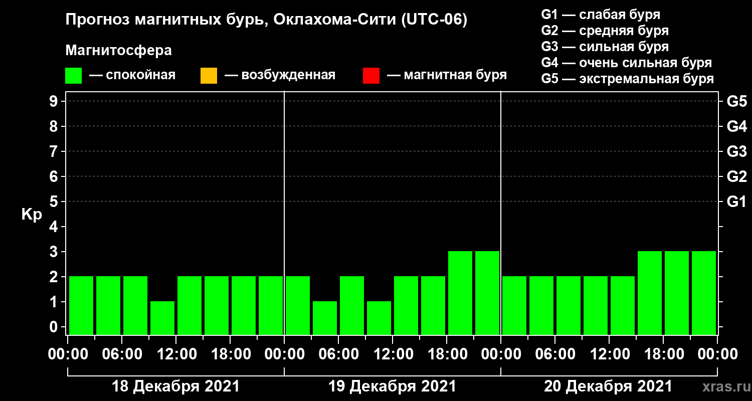 Прогноз магнитных бурь Оклахома-Сити на 18 декабря 2021 года
