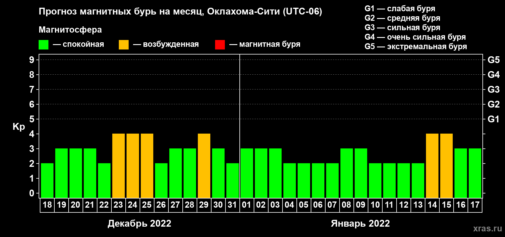 Прогноз магнитных бурь Оклахома-Сити — 18 декабря 2021 года