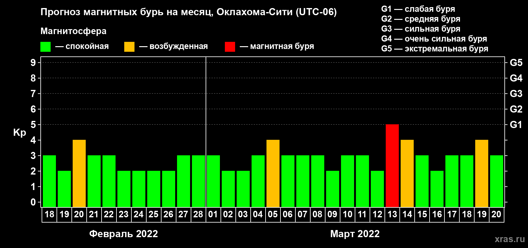 Прогноз магнитных бурь Оклахома-Сити — 18 февраля 2022 года