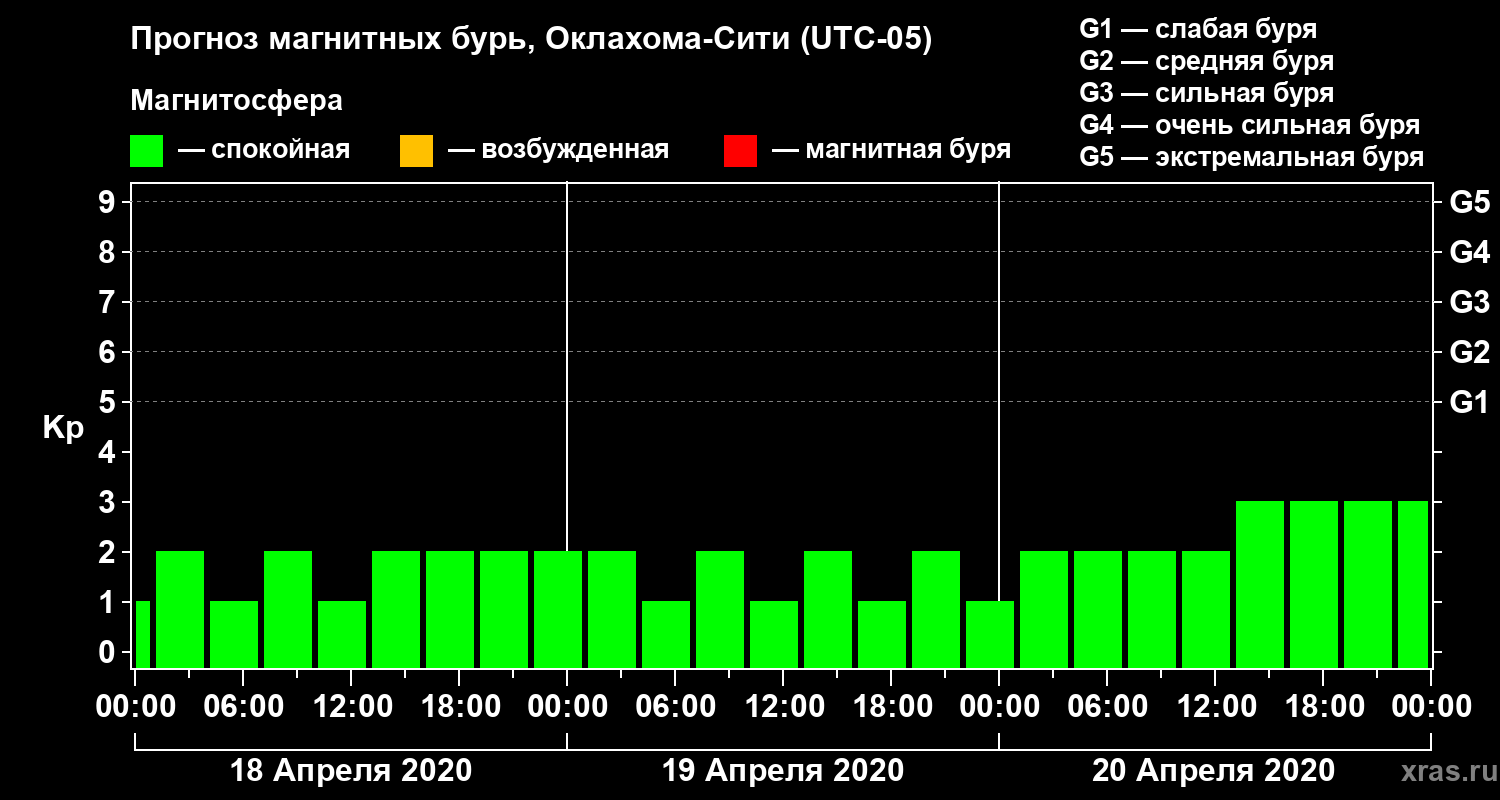 Прогноз магнитных бурь Оклахома-Сити — 18 апреля 2020 года
