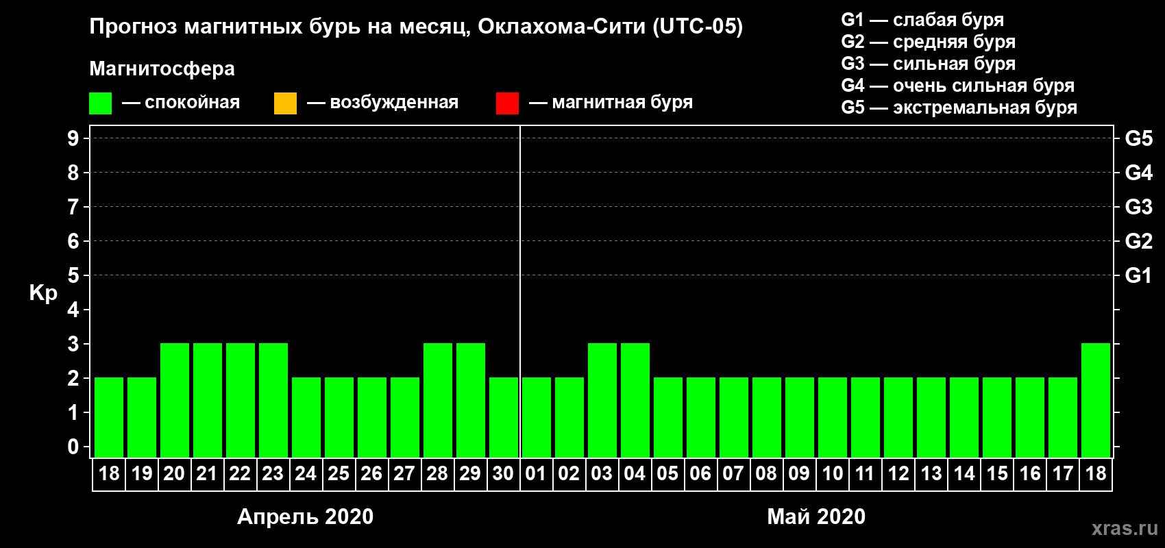 Прогноз магнитных бурь Оклахома-Сити на 18 апреля 2020 года