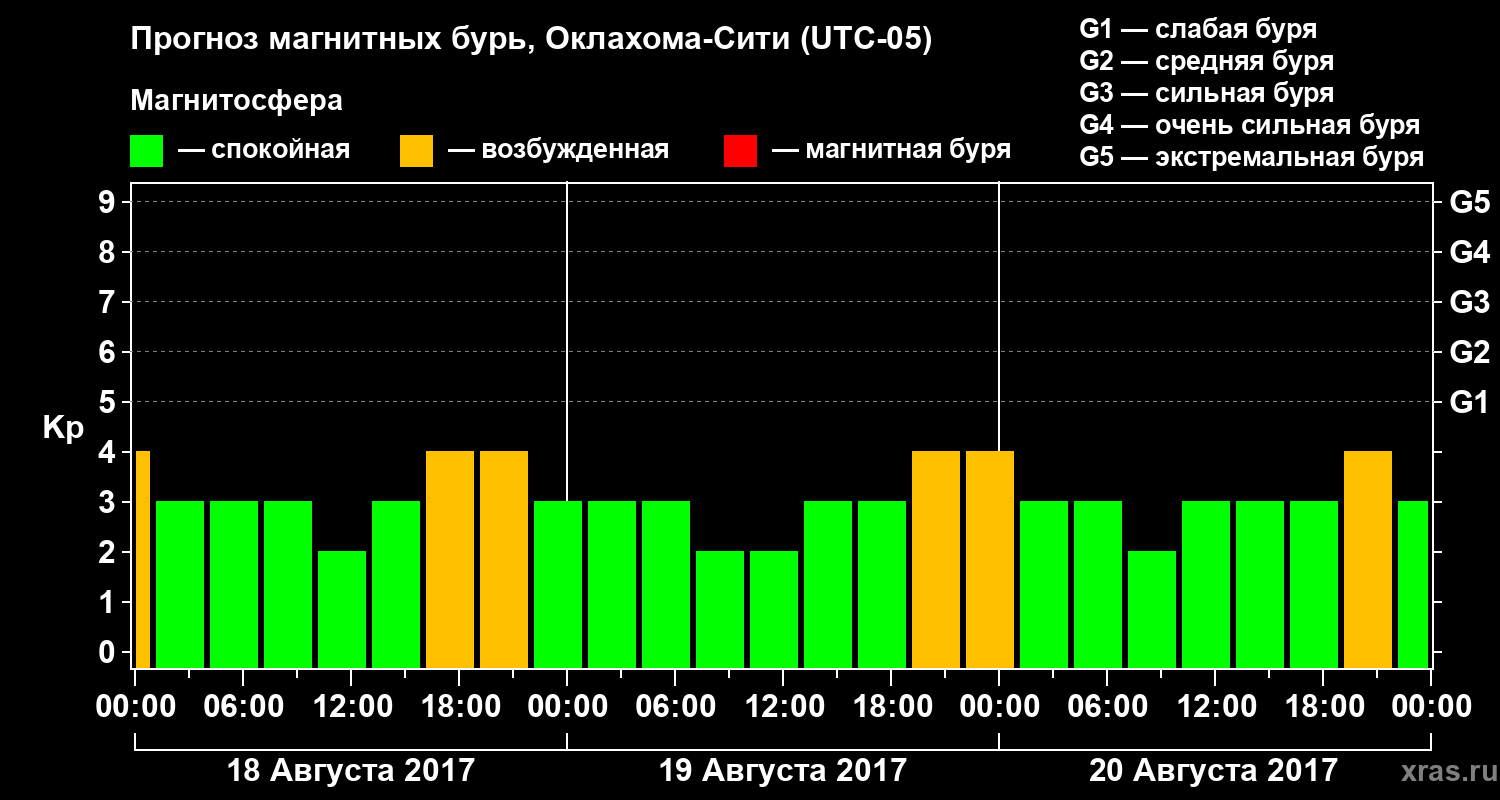 Прогноз магнитных бурь Оклахома-Сити — 18 августа 2017 года