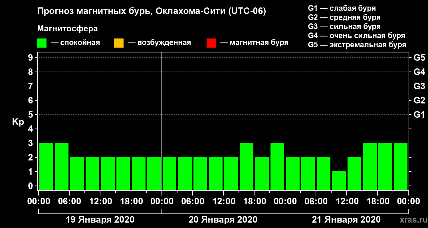 Прогноз магнитных бурь Оклахома-Сити — 19 января 2020 года