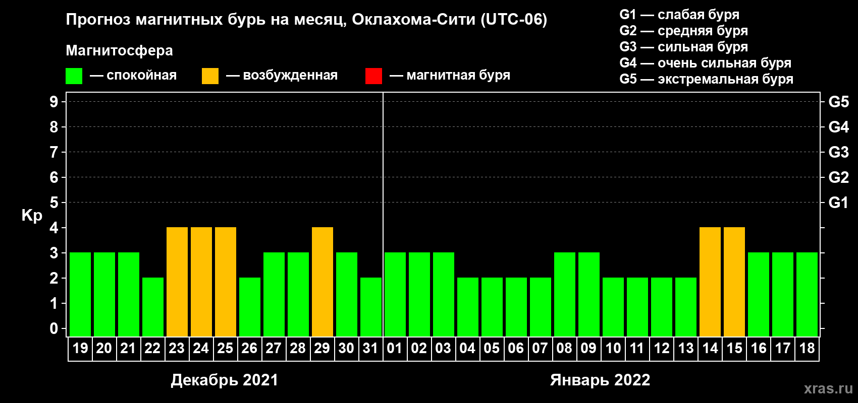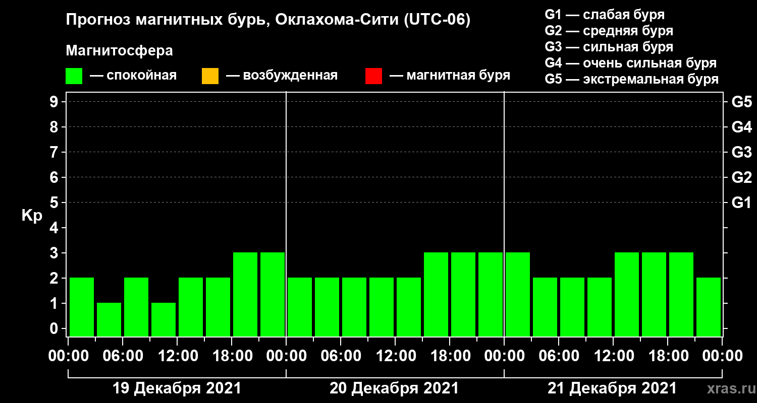 Прогноз магнитных бурь Оклахома-Сити — 19 декабря 2021 года