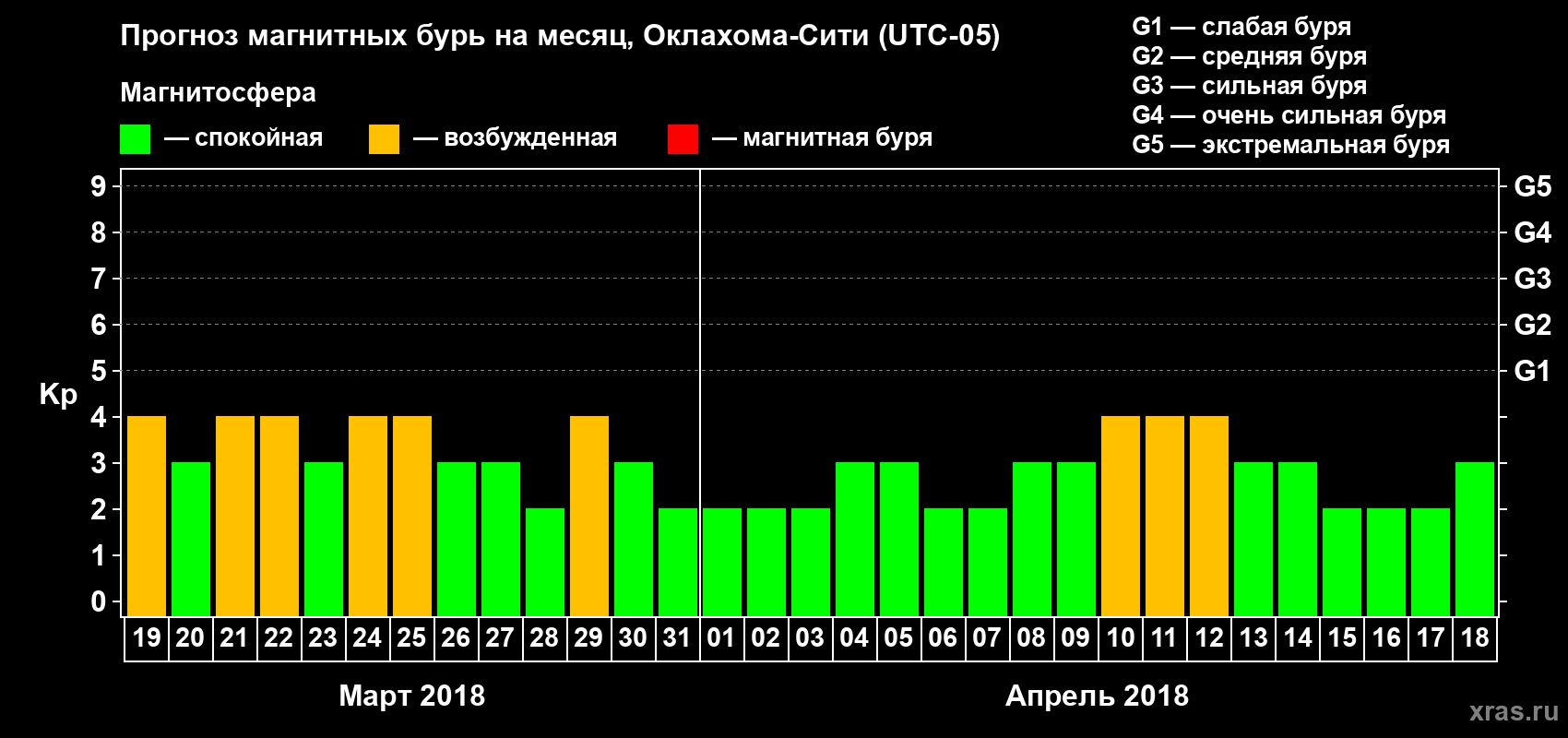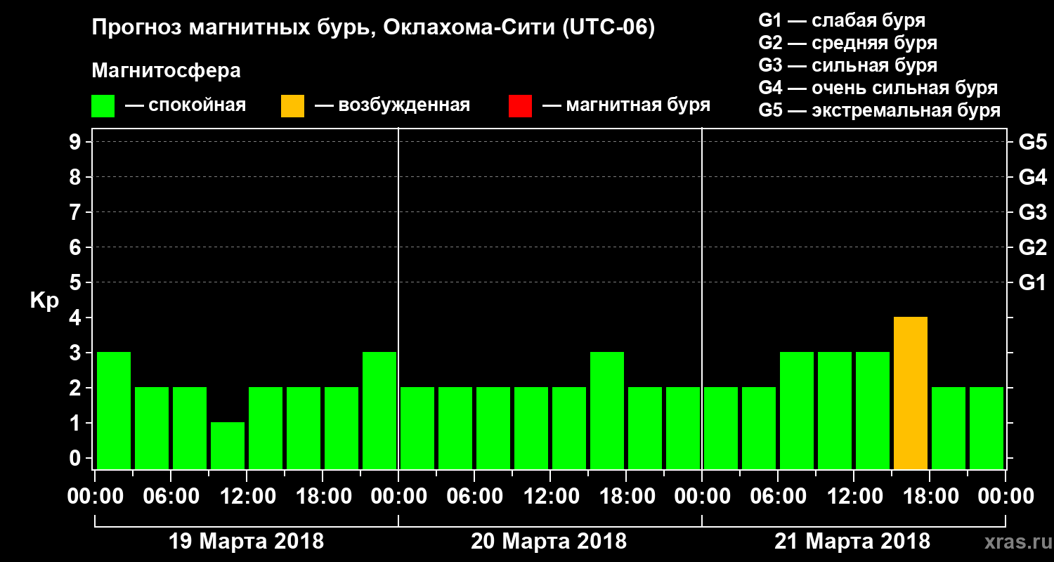 Прогноз магнитных бурь Оклахома-Сити на 19 марта 2018 года