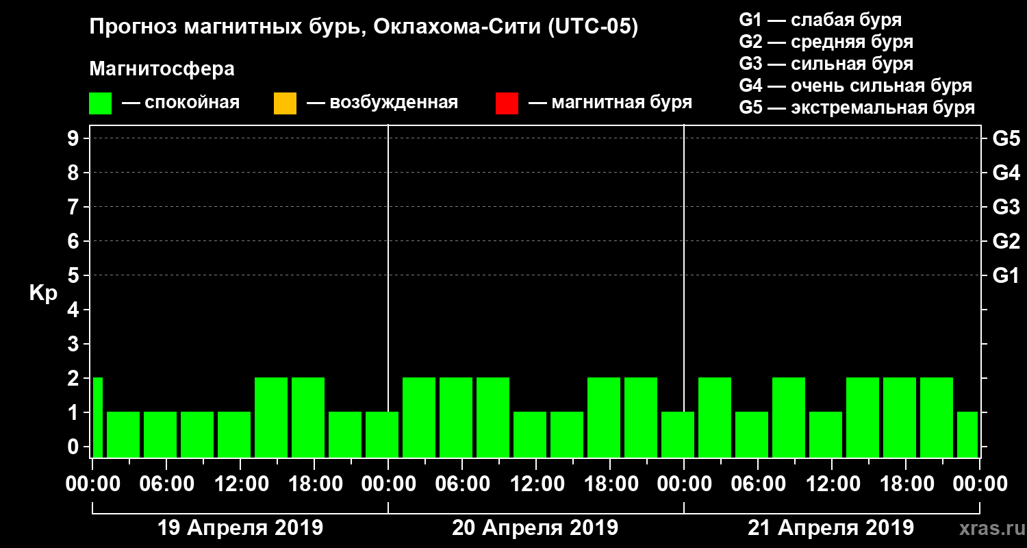 Прогноз магнитных бурь Оклахома-Сити — 19 апреля 2019 года