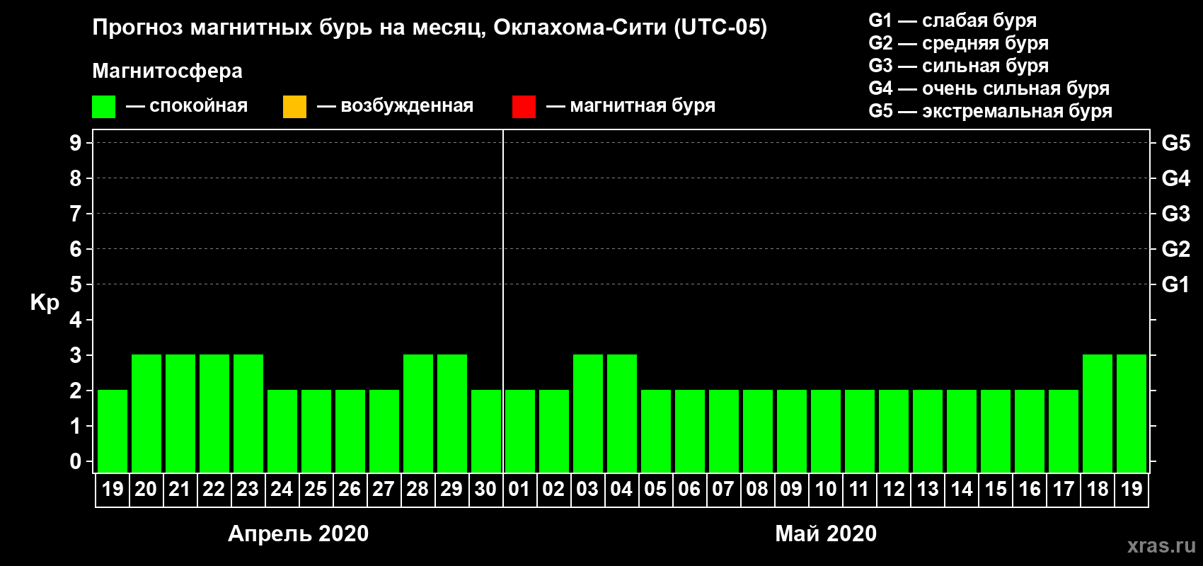 Прогноз магнитных бурь Оклахома-Сити — 19 апреля 2020 года