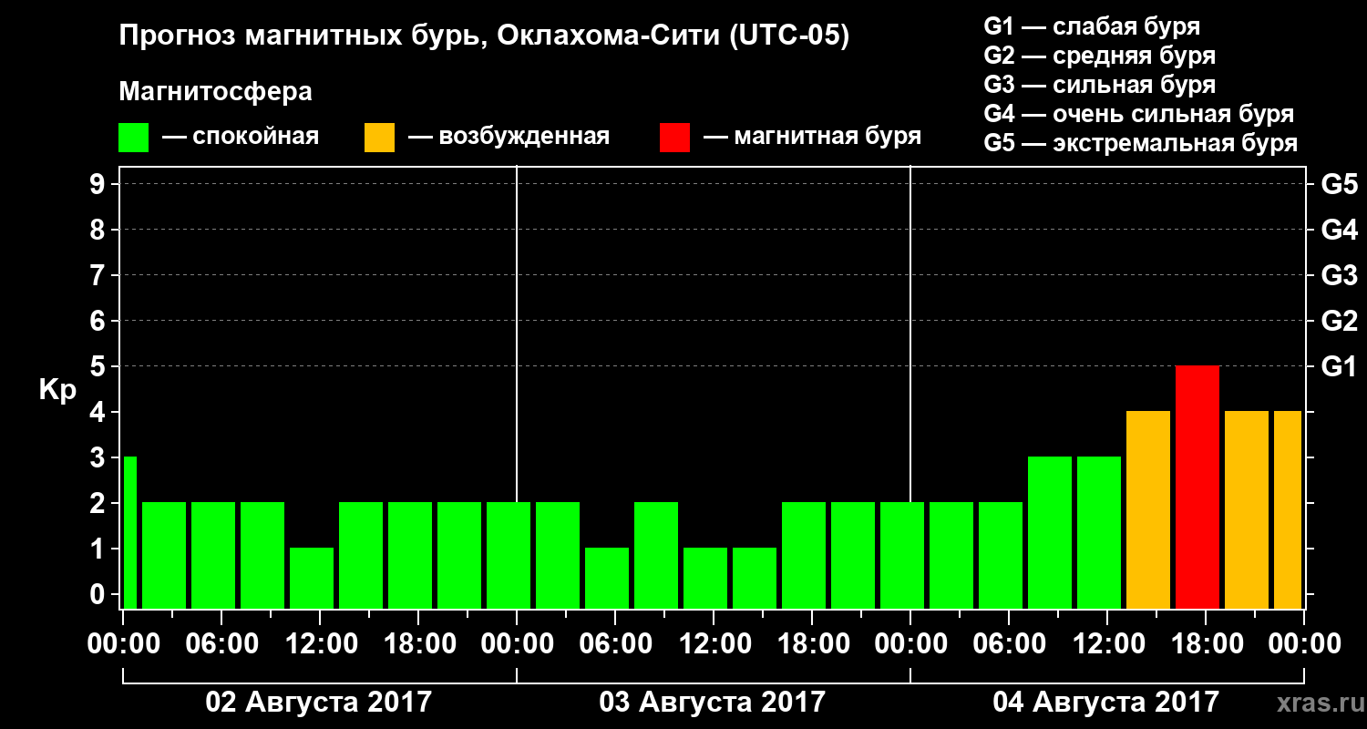 Прогноз магнитных бурь Оклахома-Сити на 2 августа 2017 года
