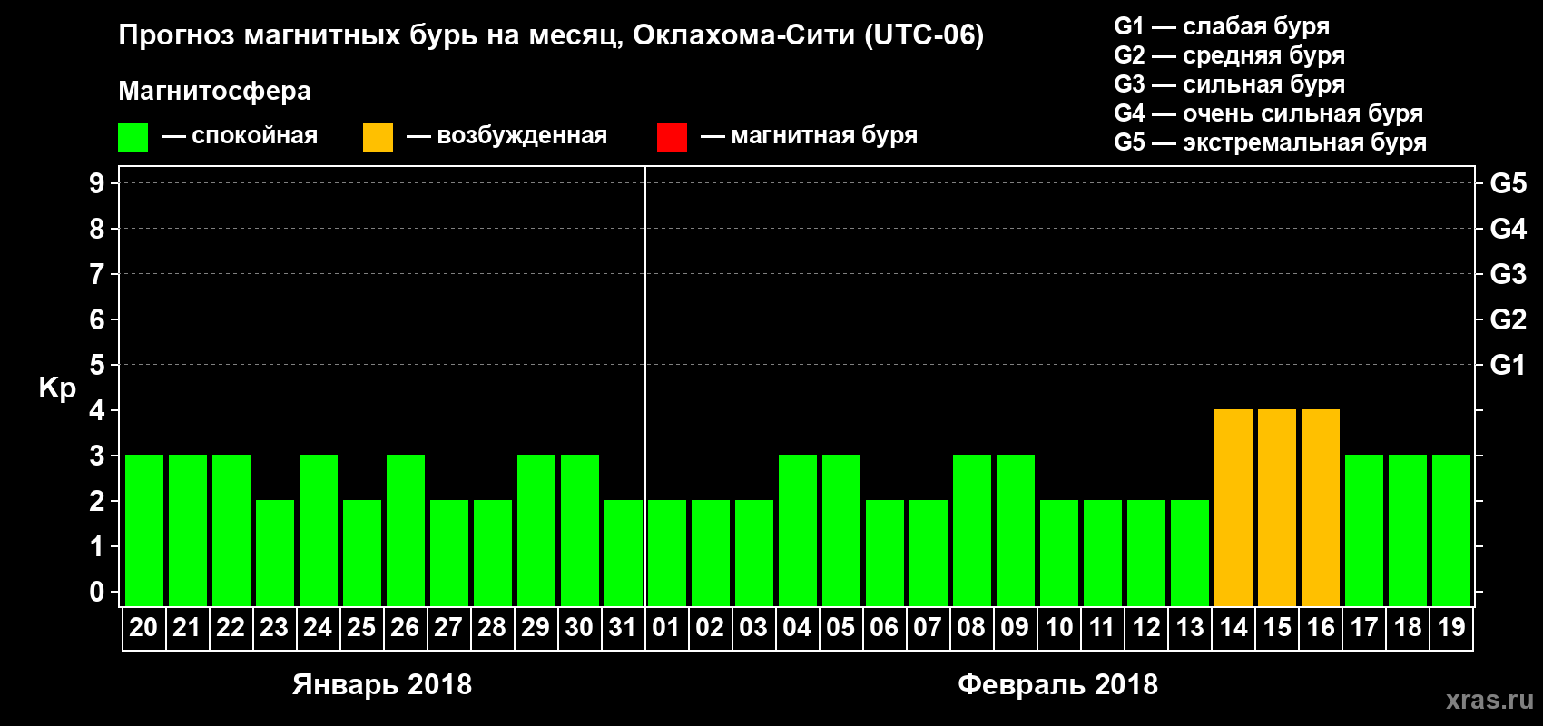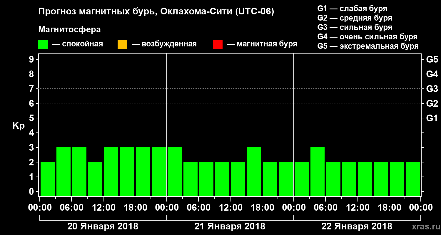 Прогноз магнитных бурь Оклахома-Сити — 20 января 2018 года
