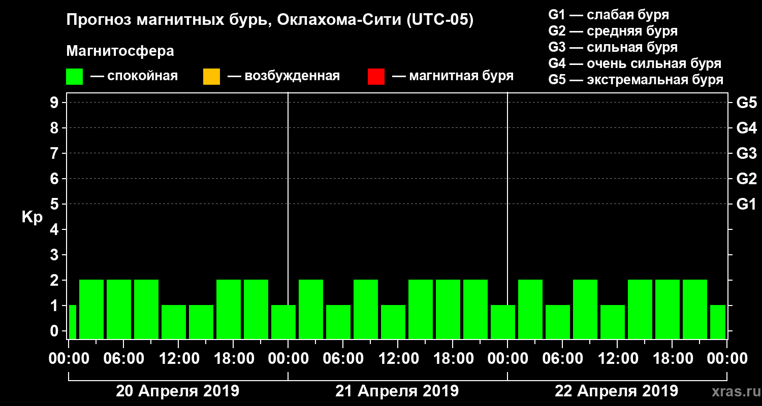 Прогноз магнитных бурь Оклахома-Сити на 20 апреля 2019 года