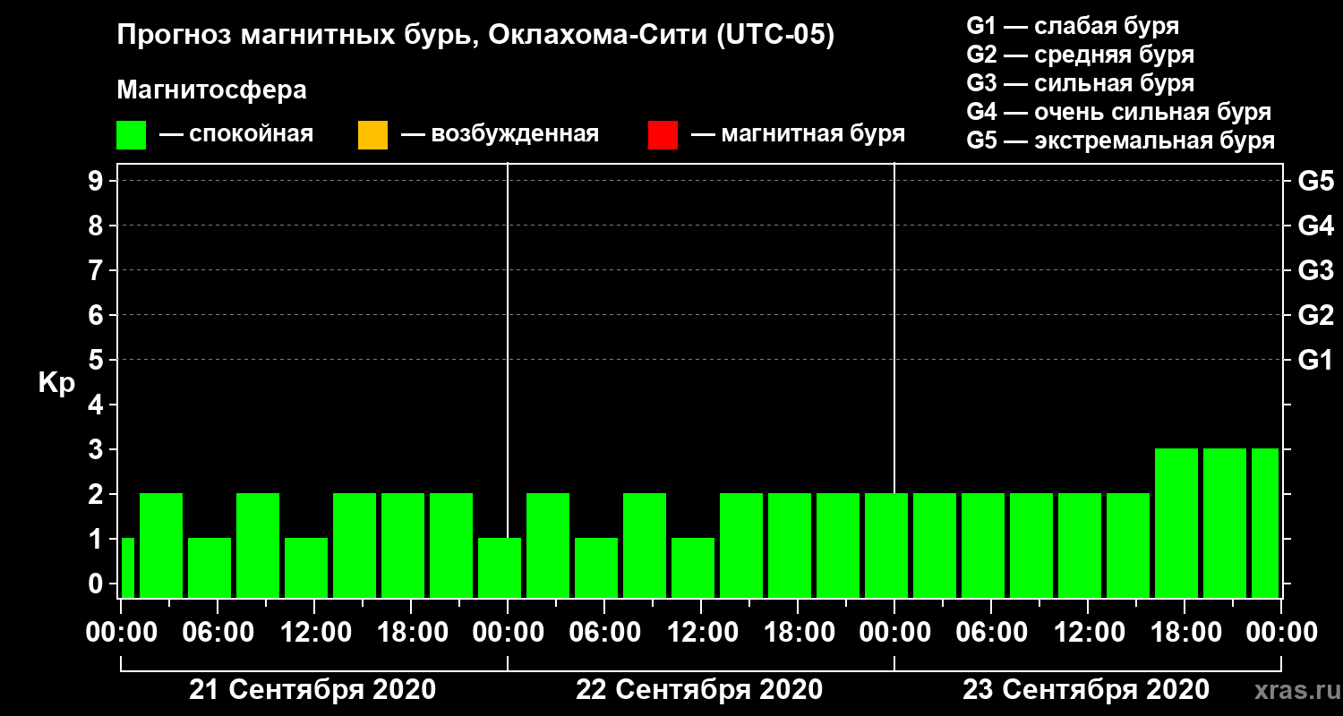 Прогноз магнитных бурь Оклахома-Сити — 21 сентября 2020 года
