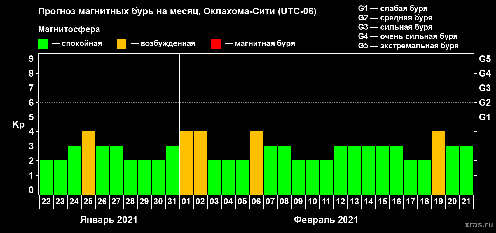 Прогноз магнитных бурь Оклахома-Сити — 22 января 2021 года