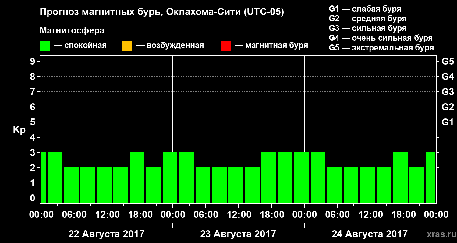 Прогноз магнитных бурь Оклахома-Сити — 22 августа 2017 года