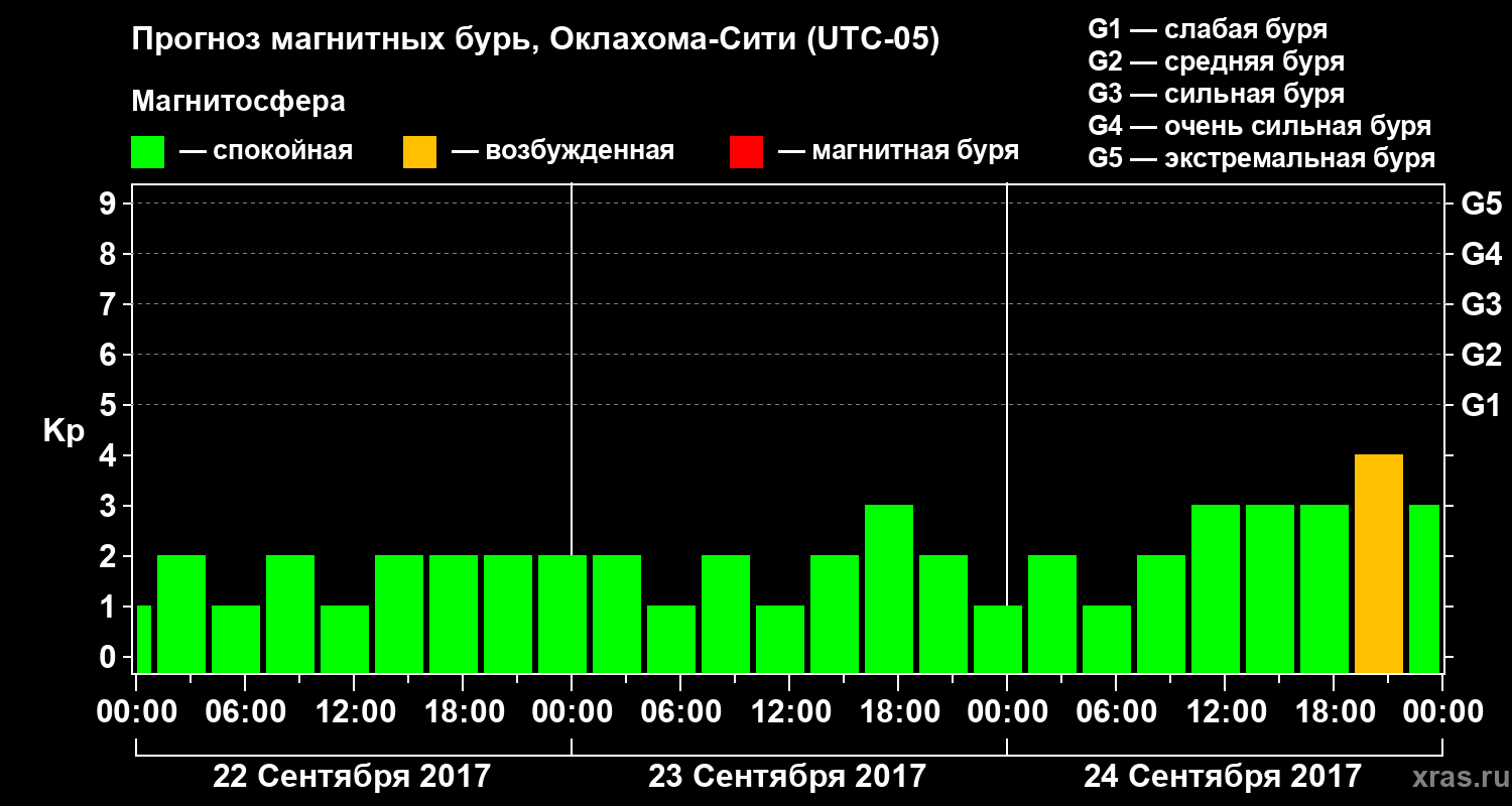 Прогноз магнитных бурь Оклахома-Сити — 22 сентября 2017 года
