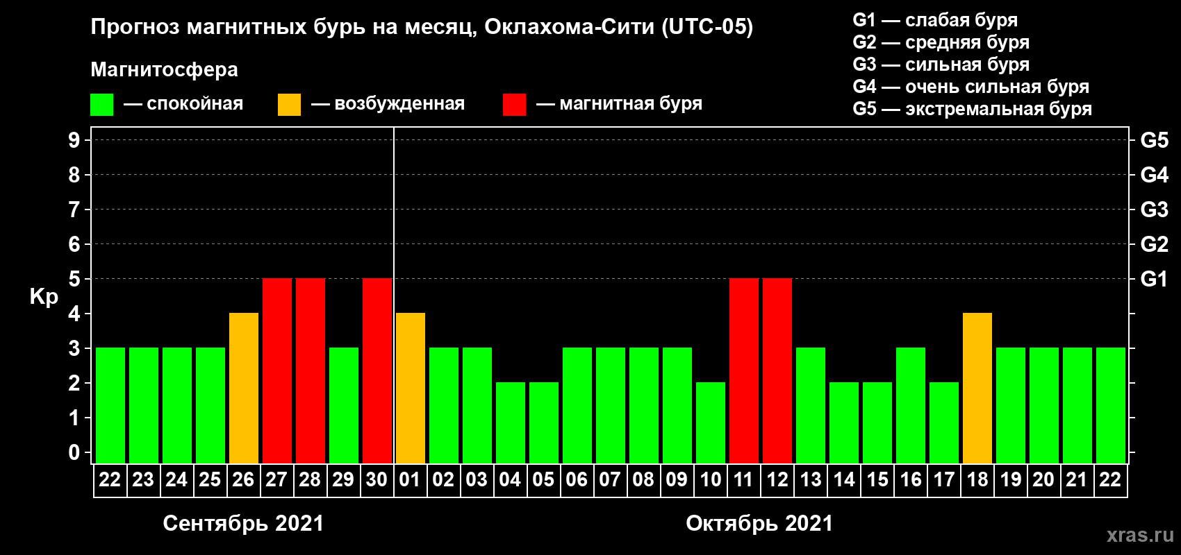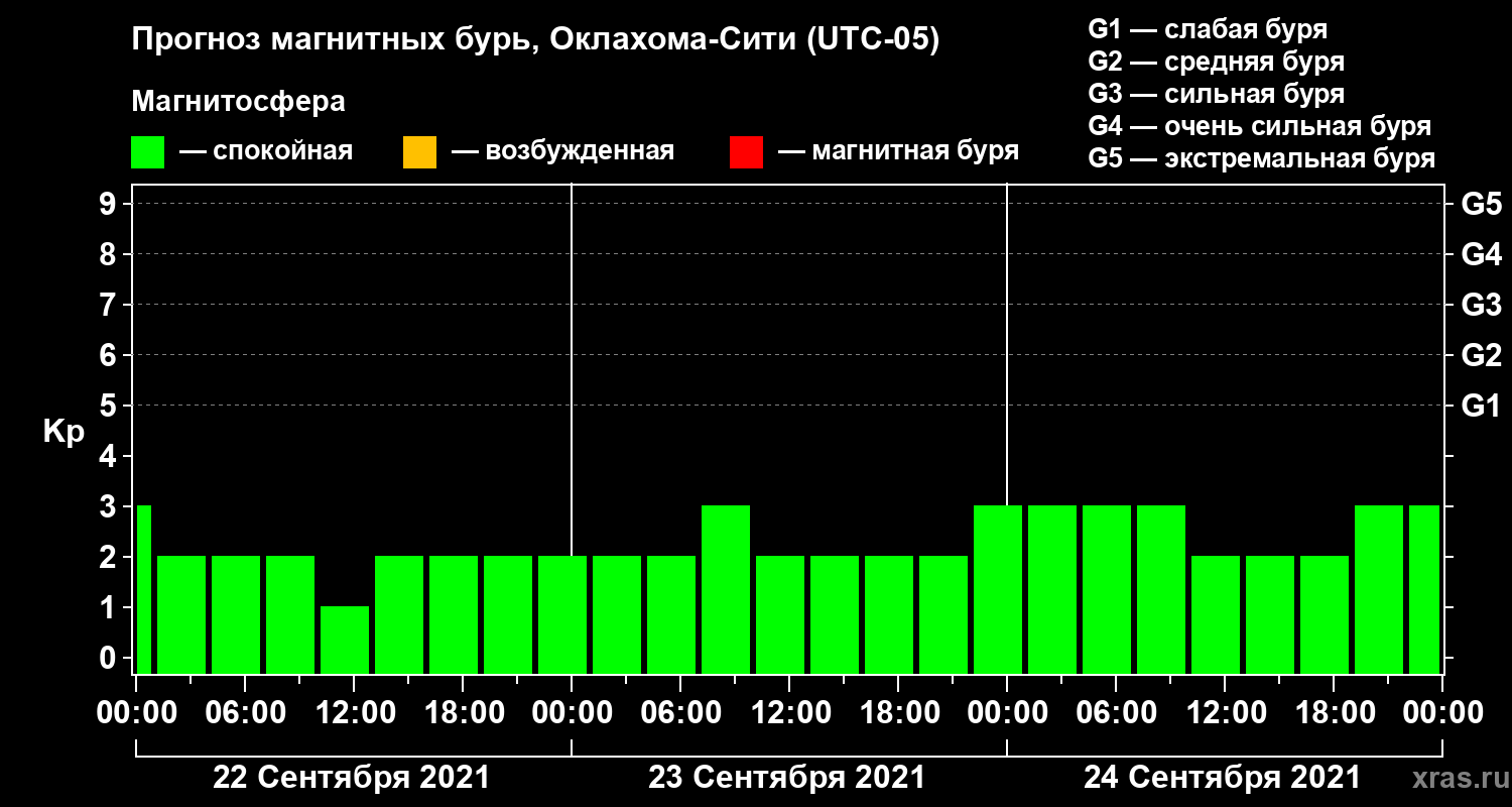Прогноз магнитных бурь Оклахома-Сити — 22 сентября 2021 года