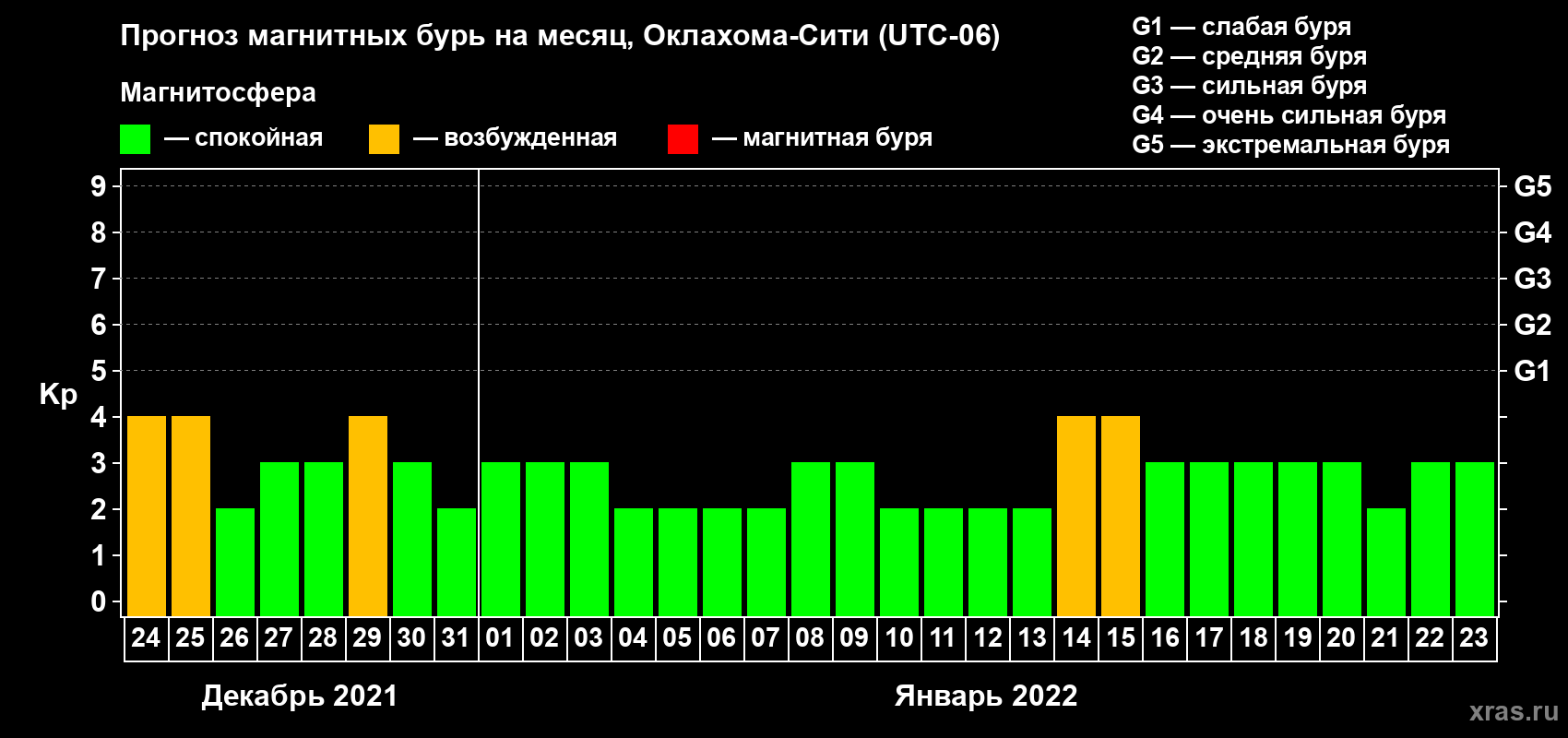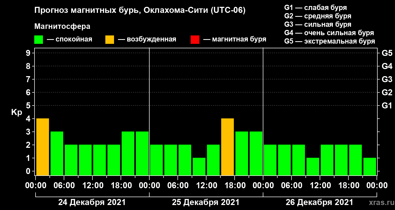 Прогноз магнитных бурь Оклахома-Сити на 24 декабря 2021 года