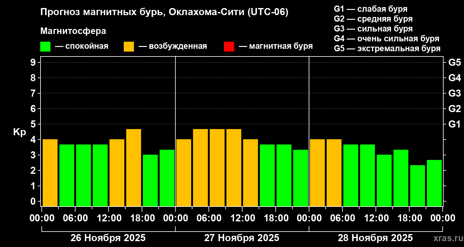 Прогноз магнитных бурь Оклахома-Сити на 26 ноября 2025 года