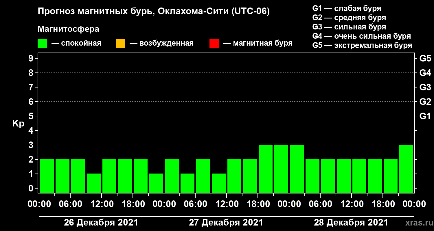 Прогноз магнитных бурь Оклахома-Сити на 26 декабря 2021 года