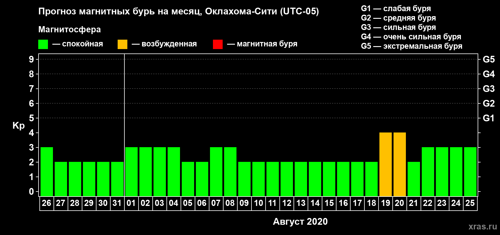Прогноз магнитных бурь Оклахома-Сити на 26 июля 2020 года