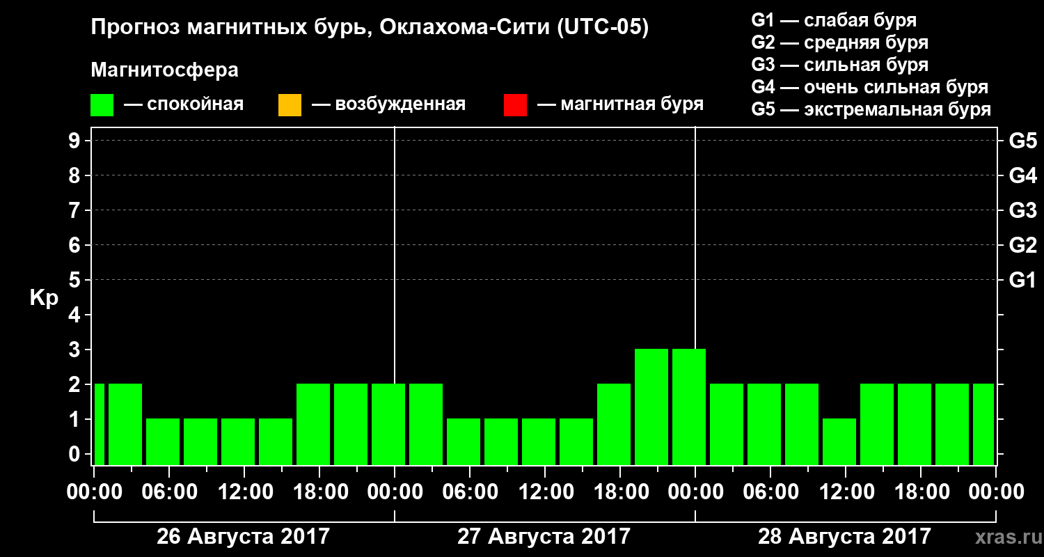 Прогноз магнитных бурь Оклахома-Сити на 26 августа 2017 года
