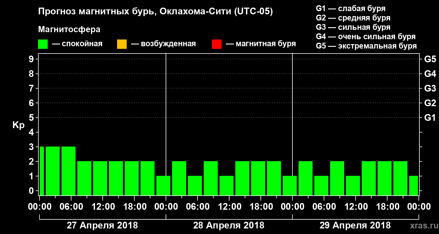 Прогноз магнитных бурь Оклахома-Сити на 27 апреля 2018 года