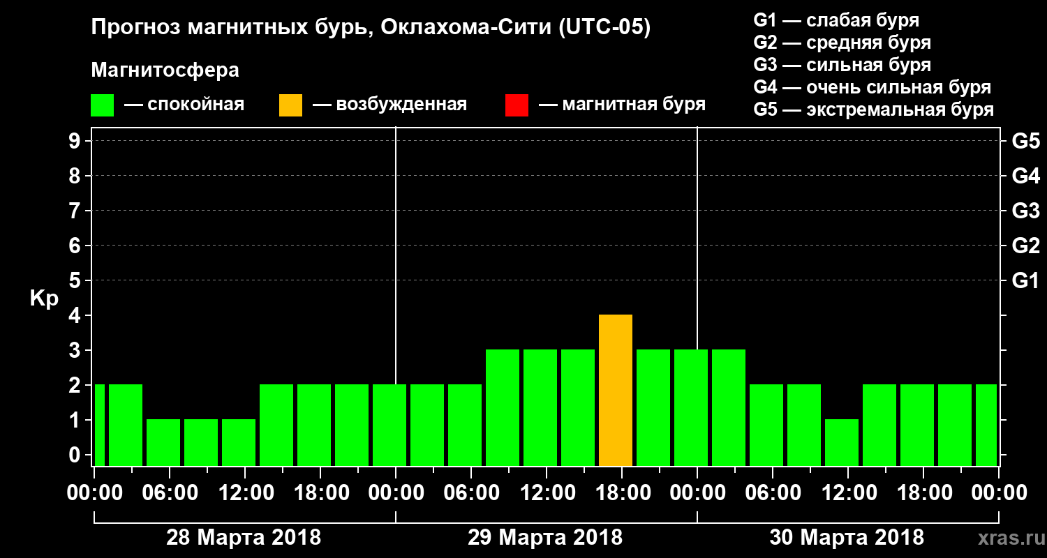 Прогноз магнитных бурь Оклахома-Сити — 28 марта 2018 года