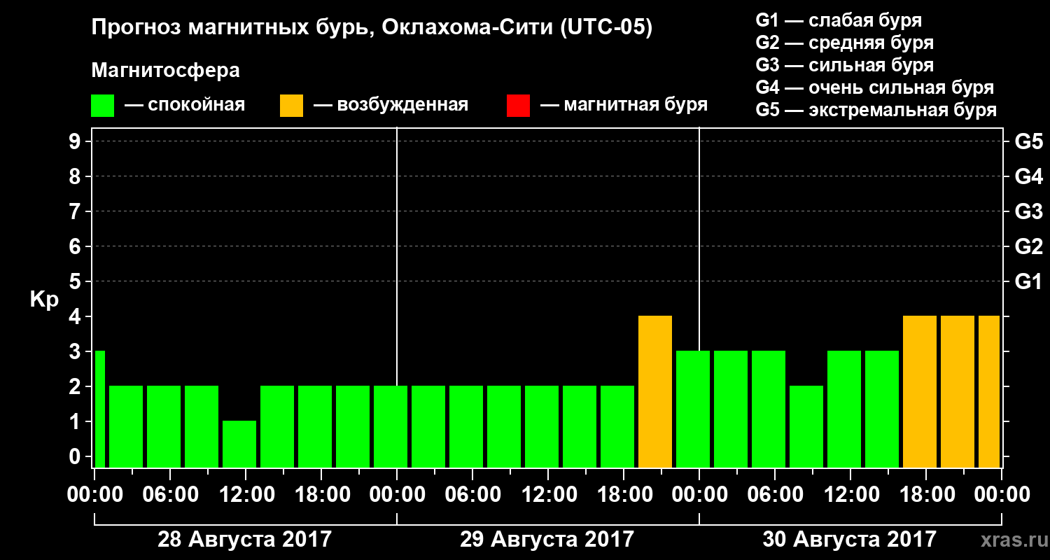Прогноз магнитных бурь Оклахома-Сити — 28 августа 2017 года