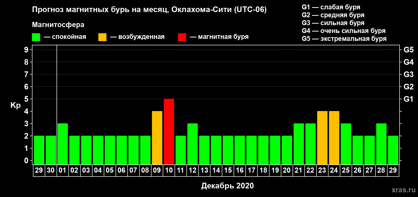 Прогноз магнитных бурь Оклахома-Сити — 29 ноября 2020 года