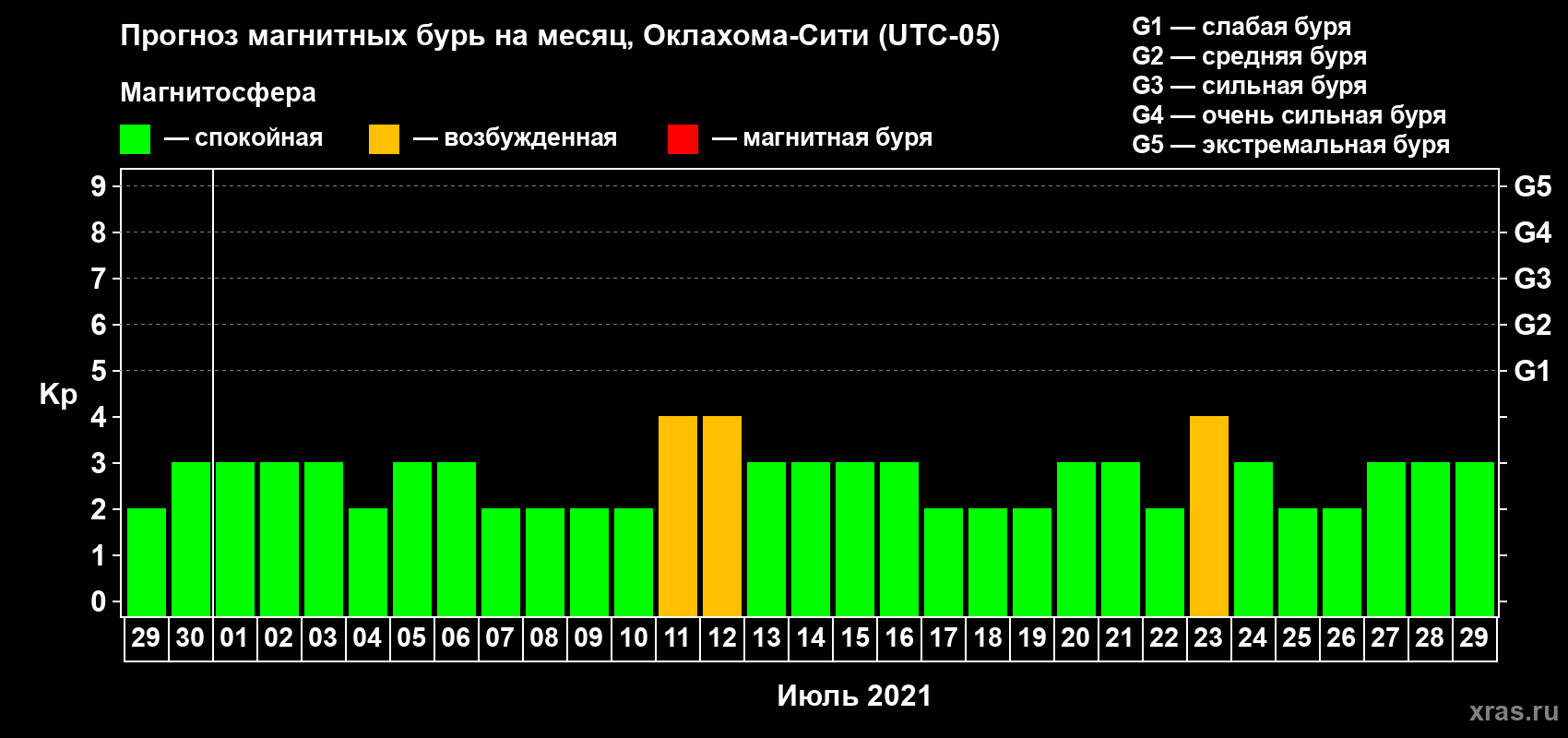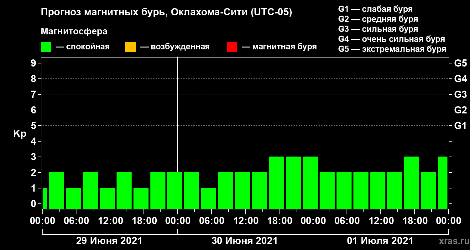 Прогноз магнитных бурь Оклахома-Сити на 29 июня 2021 года