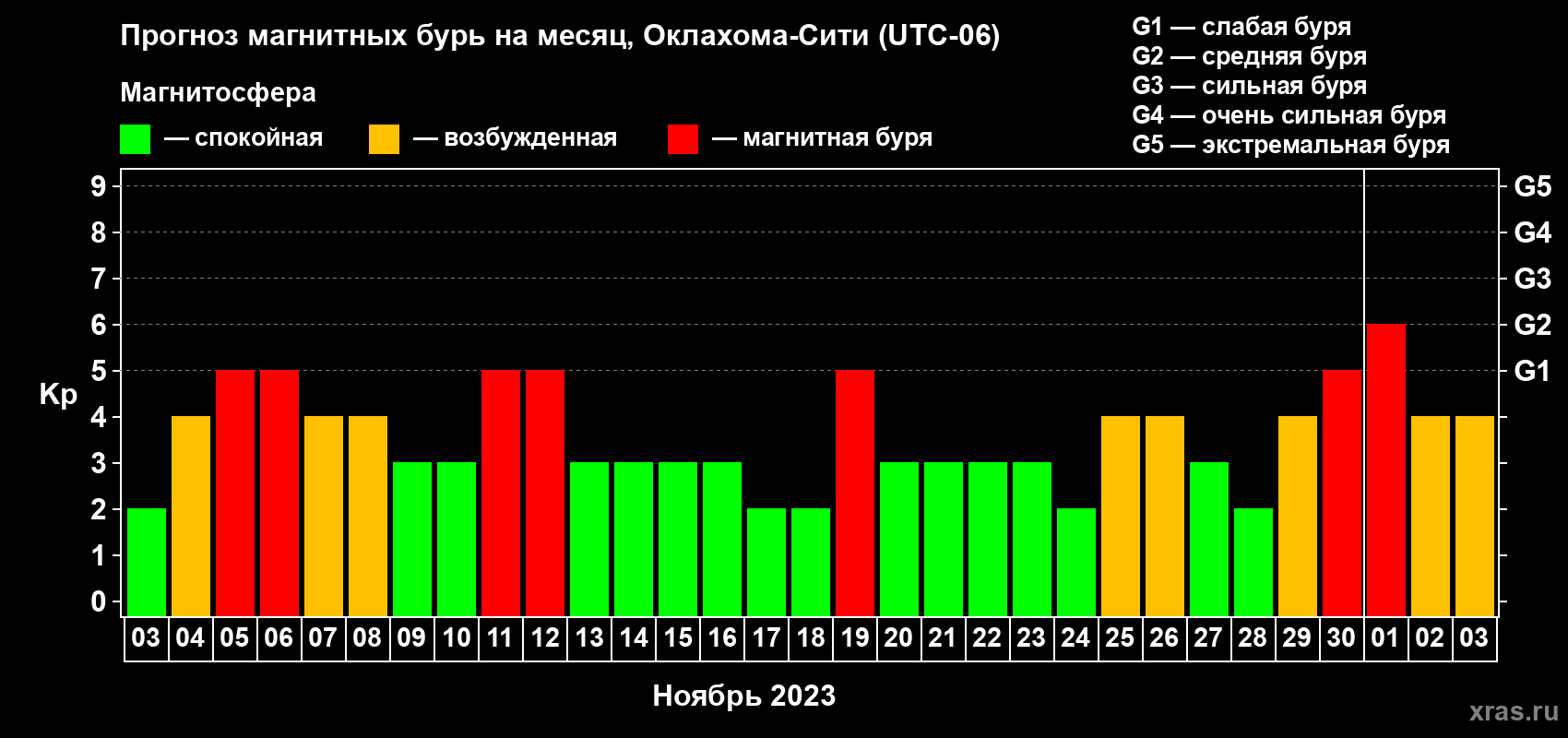 Прогноз магнитных бурь Оклахома-Сити на 3 ноября 2023 года