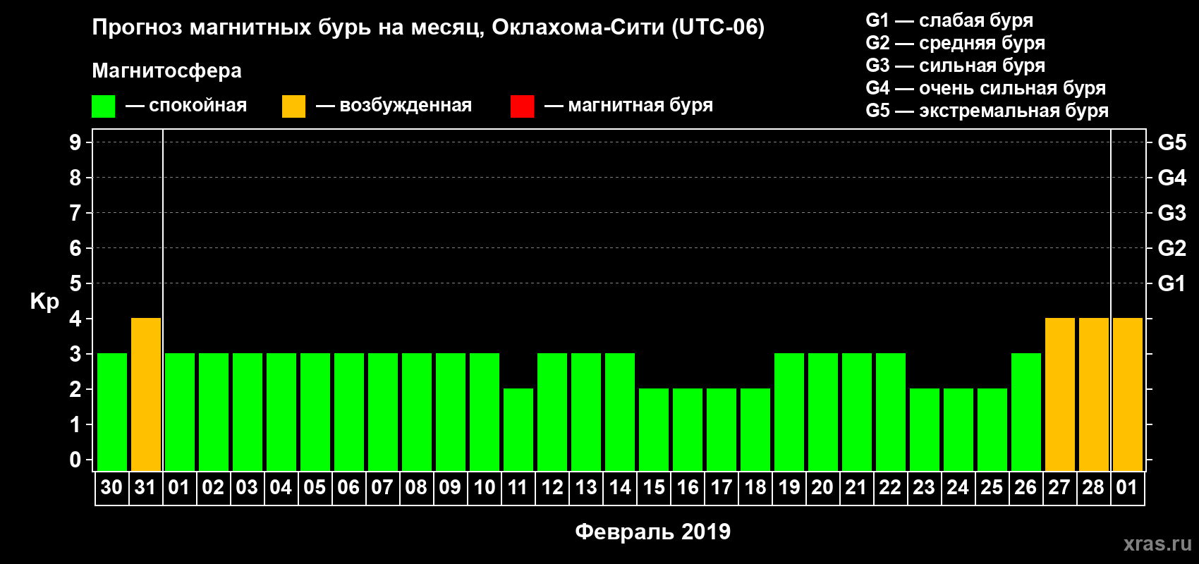 Прогноз магнитных бурь Оклахома-Сити — 30 января 2019 года