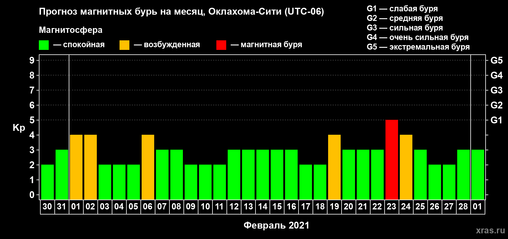 Прогноз магнитных бурь Оклахома-Сити — 30 января 2021 года