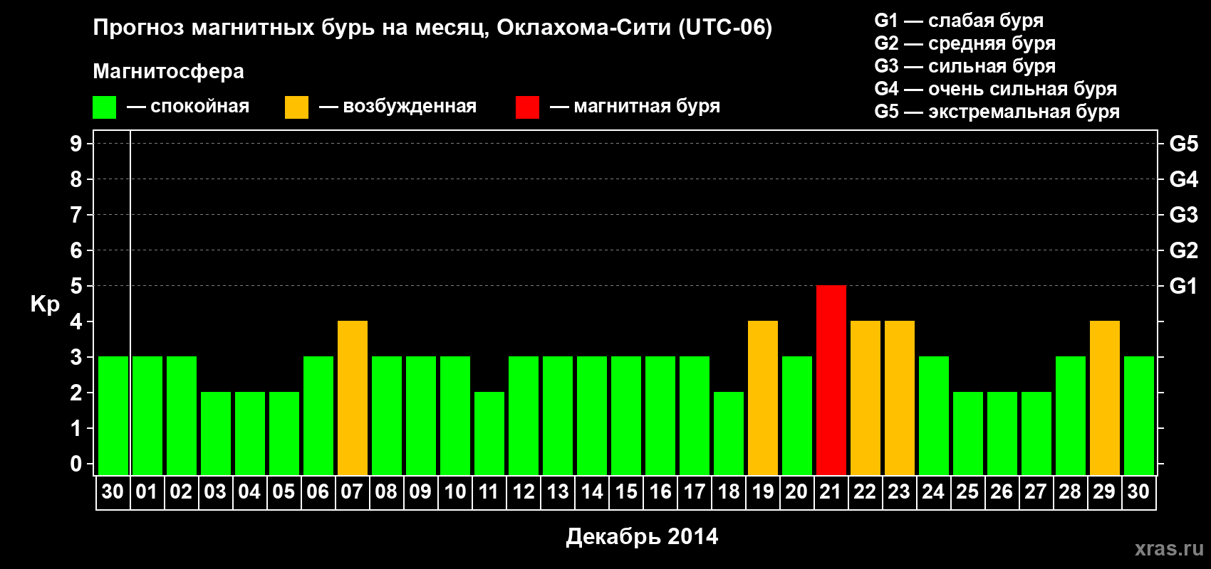 Прогноз магнитных бурь Оклахома-Сити — 30 ноября 2014 года