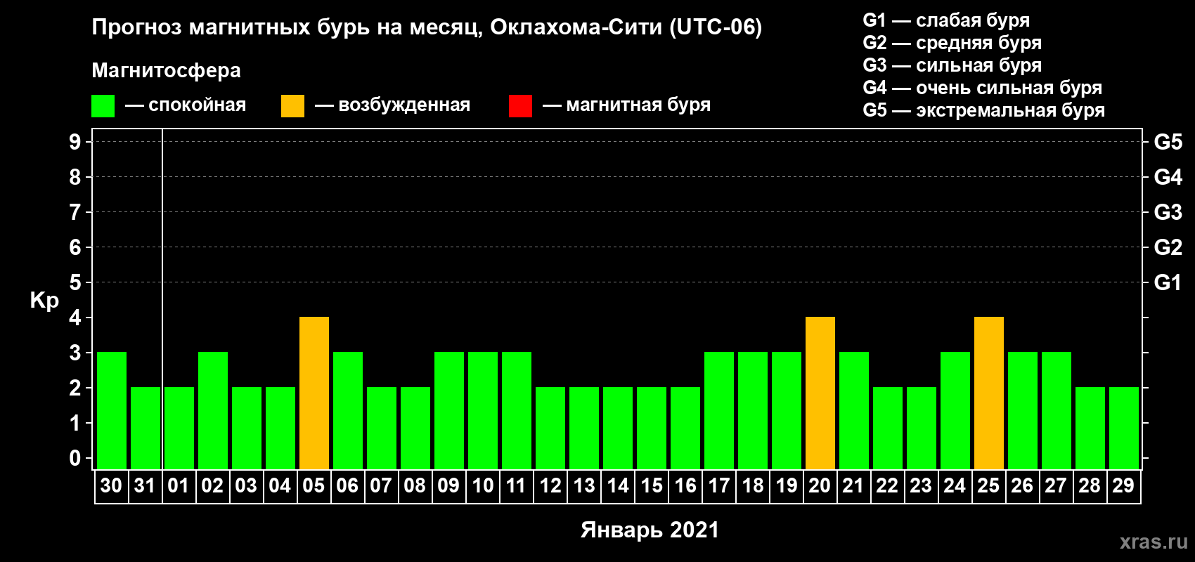 Прогноз магнитных бурь Оклахома-Сити на 30 декабря 2020 года