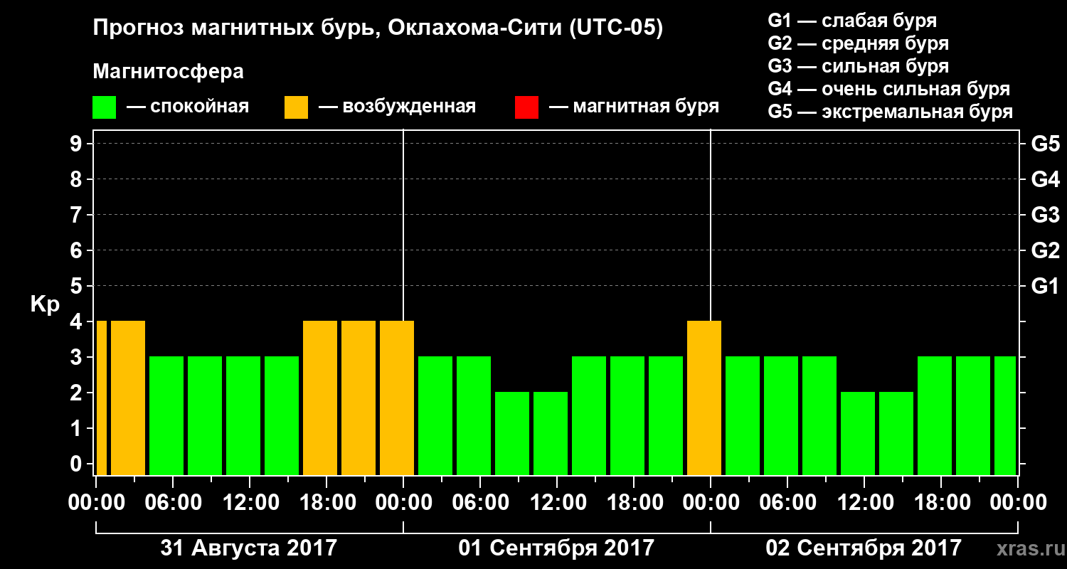 Прогноз магнитных бурь Оклахома-Сити — 31 августа 2017 года