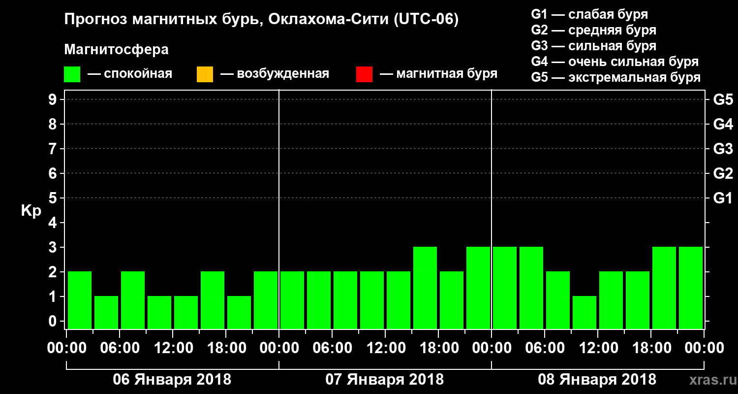 Прогноз магнитных бурь Оклахома-Сити на 6 января 2018 года